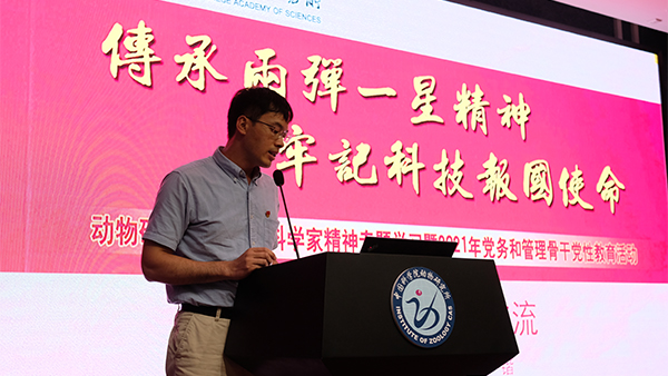 范一锴向与会党员进行“动物研究所党史和科学家精神专题学习暨党务和管理骨干党性教育活动”学习体会汇报交流