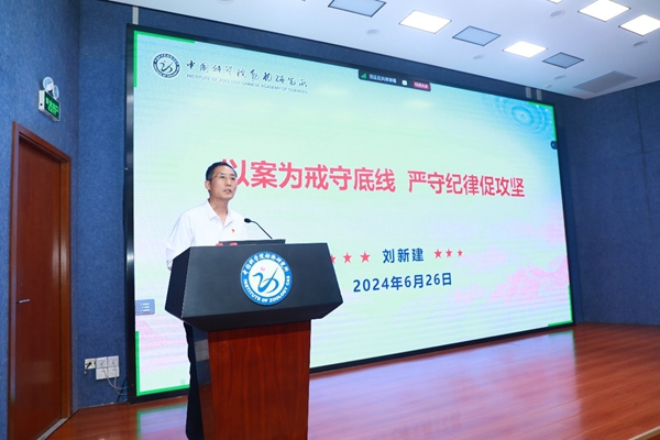 为深入开展党纪学习教育,推进党风廉政建设,以严明的纪律为加快抢占科技制高点提供坚强纪律保障,6月26日,动物研究所召开全所党风廉政建设和警示教育大会暨党纪学习教育推进会。所领导班子成员、党委委员、纪委委员、重点室主任/副主任、党总支全体委员、党支部书记/副书记/纪检委员、管理支撑部门中层干部、重点室秘书等60余人现场参会;全体研究员、科研助理,党支部其他委员、管理支撑部门工作人员100余人通过视频参加会议。会议由党委副书记、纪委书记刘新建主持。