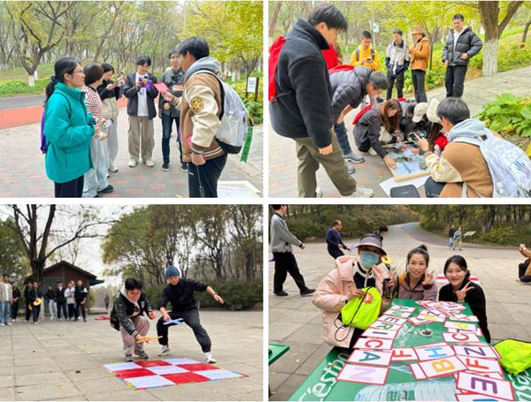 秋阳杲杲,惠风和畅。13点30分,活动正式拉开序幕,青年师生在奥林匹克森林公园南门集合,有序签到后,在专业指导下完成热身运动。参赛队伍斗志昂扬、出发前喊出“科技报国”、“团结协作”、“勇攀高峰”等口号。活动路线设计别出心裁,以奥林匹克森林公园南园的健步道为基础,设置理论知识打卡点,同时巧妙设置了“飞镖接力”、“三子棋”、“双人夹球跑”、“磁力拼图”等趣味竞赛。参赛队伍以跨研究所组成的团队为单位,队员们打破学科壁垒,手持地图,时而驻足研讨,时而奋力奔跑,在奔跑与思考中凝聚集体力量。五彩的背包在公园的健步道与林间小径上跃动,构成了一道亮丽的风景线。各参赛队伍凭借集体智慧和通力协作,完成闯关答题和团队任务,充分展现了参赛青年奋发进取、团结协作的青春风貌。