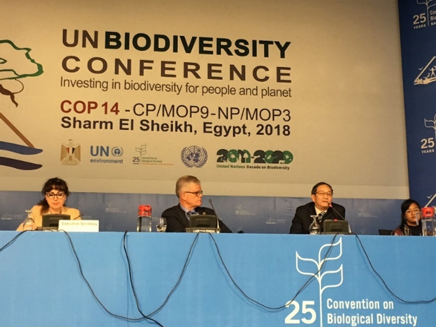 为应对全球日益严重的生物多样性丧失及其导致的生态环境退化,1992年联合国发起制定了《生物多样性公约》(CBD),中国是最早签署该公约的国家之一,迄今为止已经有196个缔约方。CBD每两年举办一次缔约方大会,共议全球生物多样性保护大计。第14届大会(COP14)于11月17-29日在埃及沙姆沙伊赫召开,中国科学院院院士、发展中国家科学院院士魏辅文研究员应CBD秘书处邀请,参加了大会期间的最重要日程之一—“2050年生物多样性愿景设想”的高端对话,并做题为“生态文明建设保障人与自然的和谐统一(How to Guarantee Unity of Nature and Man——Ecological Civilization)”的主旨发言。
