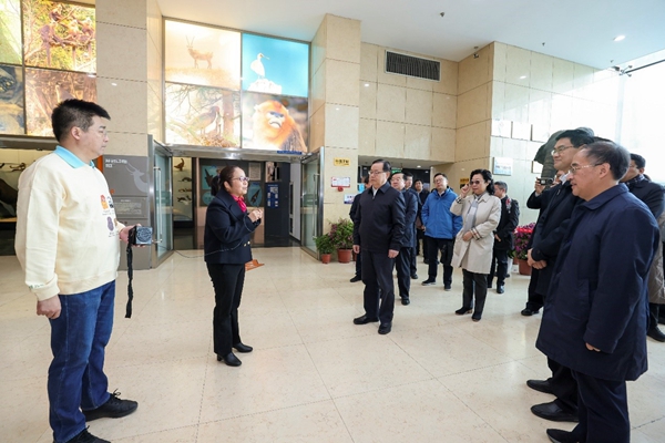 随后,在动物博物馆张劲硕副馆长的讲解下,蒋作君一行参观了濒危动物展厅、鸟类展厅和正在进行的第五届中国动物标本大赛作品展。