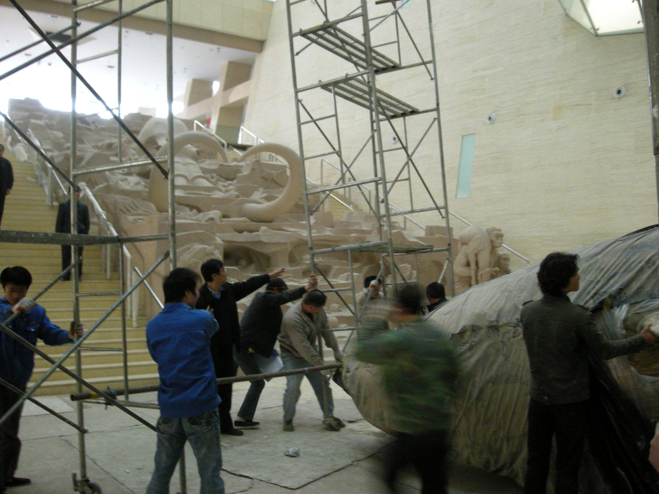 为了迎接2009年科技活动周启动仪式暨国家动物博物馆开馆仪式,博物馆全体人员与标本厂家、施工和设计单位密切配合,不分周日和周末,紧锣密鼓进行布展。最先布展的是鸟厅的海洋鸟景窗。福建福州市台江区义州教具厂在郑厂长的带领下,一行7人来到博物馆。