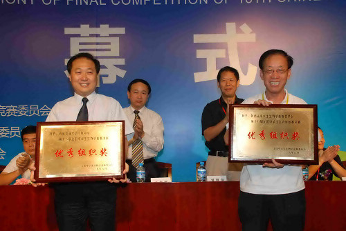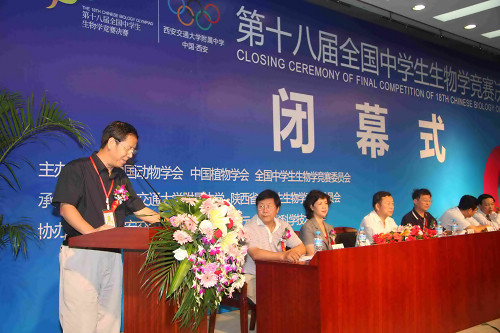 陕西省中学生生物学竞赛委员会主任、陕西省植物学会理事长赵桂仿教授主持22日上午的闭幕式,陕西省教育厅副厅长卢力群致闭幕词,全国中学生生物学竞赛委员会主任刘恩山教授对本次竞赛决赛的试题构成及特点进行了详尽的说明,同时,对选手们在本届竞赛决赛中的答题情况进行了全面的总结和深入的分析。为感谢各承办方和支持方为竞赛成功举办作出的努力,全国中学生生物学竞赛委员会向陕西省中学生生物学竞赛委员会、西安交通大学附属中学颁发了“优秀组织奖”。同时,全国中学生生物学竞赛委员会向本届竞赛的支持单位西安交通大学、陕西省青少年科技中心、陕西省教育厅、陕西省动物学会、陕西省植物学会、麦克奥迪实业集团公司、西安天隆科技有限公司等单位授予了锦旗。