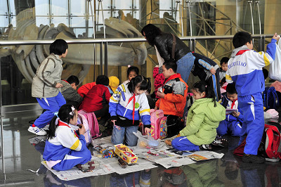 “哇!”随着一声声的惊呼,国家动物博物馆又迎来了崭新的一天。发出这一句句惊叹声的,是来自朝阳区和平里第九小学的约500名老师和小学生们(图1)。他们纷纷睁大了双眼,用惊喜的声音问:“这是真的吗?”“这个好漂亮啊!”“大老虎是真的吗?”。
